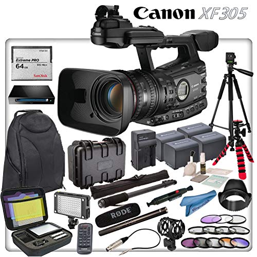 - MFR# 4454B001 This Kit Includes: Canon XF 305 HD Camcorder + SanDisk Extreme Pro 64GB CFast 2.0 Card + Rode NTG4 Condenser Microphone + Full Size Sturdy Tripod + Flex Tripod + 3x Replacement Batteries + Travel Charger + Filter Kit + Graduated Filter Kit + Macro Close Up Set + Backpack + Pro LED Video Light + Hard Case and more...
