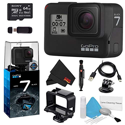 - 1 x GoPro HERO7 Black | 1 x Sony 64GB microSDHC Memory Card | 1 x Lens Pen | 1 x Lens Cleaning Kit | 1 x Memory Card Reader | 1 x Microfiber Cloth