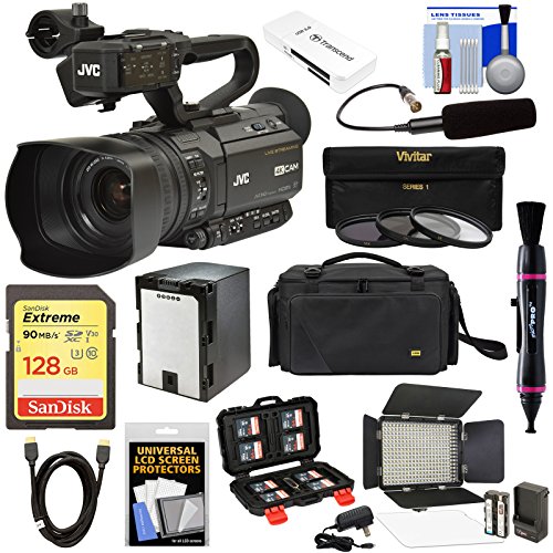 - [1] JVC GY-HM250SP Ultra 4K HD 4KCAM Professional Sports Production Camcorder + [2] JVC QAN0067-003 Microphone + [3] SanDisk 128GB SDXC I U3 Card +