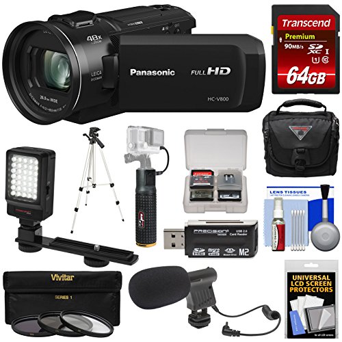 - [1] Panasonic HC-V800 Wi-Fi Full HD Video Camera Camcorder + [2] Transcend 64GB SDXC UHS-I Card + [3] Vidpro PG-6 Battery Hand Grip +